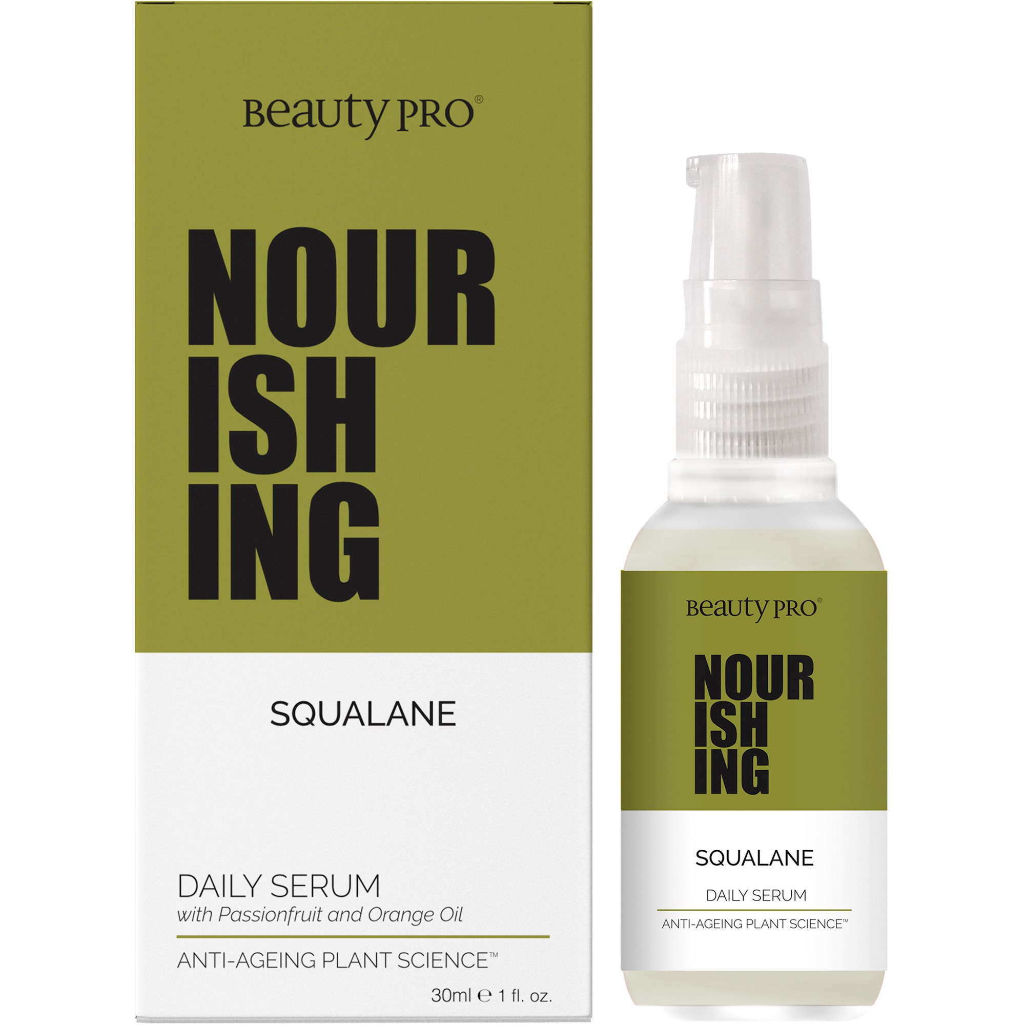 Beauty PRO Nourishing Daily Serum Squalene 30 ml Beauty PRO Nourishing Daily Serum Squalene 30 ml er fyldt med lækre ingredienser som oliven, passionsfrugt, økologisk
